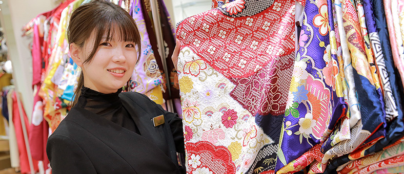 ご来店して下さるお客様の記念日を感動幸福クリエイターとしてお手伝い。お客様のお話をお伺いしながら、ベストな1着を見つけるお手伝いをしていきます。振袖という“モノ”を通して、家族愛・美しさ・感動などの付加価値を提供しています。